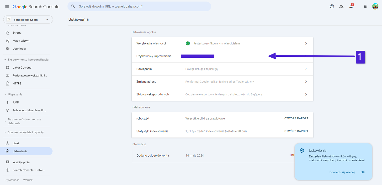 Google Search Console udostępnienie dostępu agencji SEO